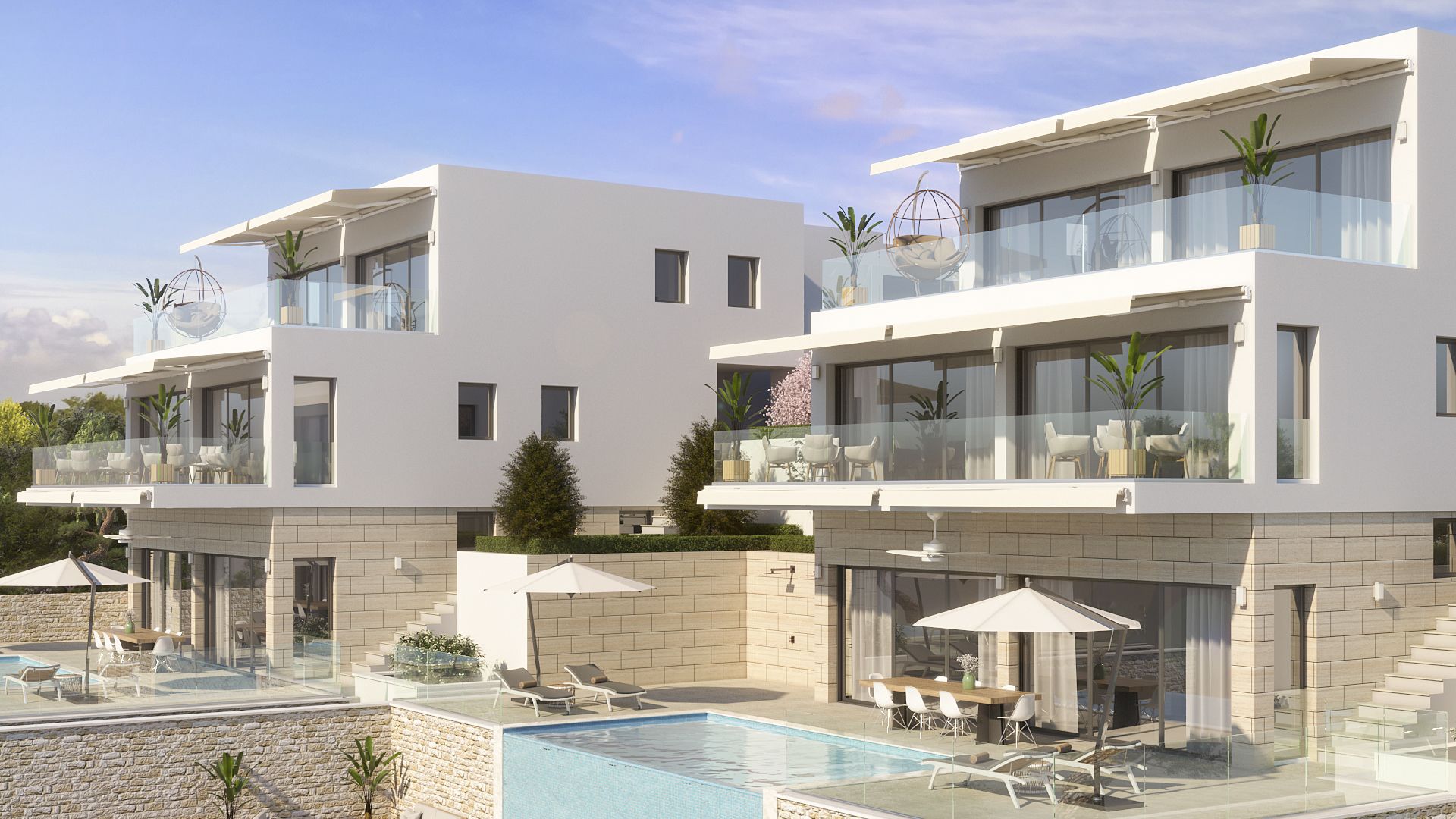 Die Villa Valeria ist die 2. baugleiche Villa im Projekt. Die Villen stehen zwar nebeneinander, aber wir haben durch die Gestaltung der Außenanlagen ein Optimum an Privatsphäre erreicht.