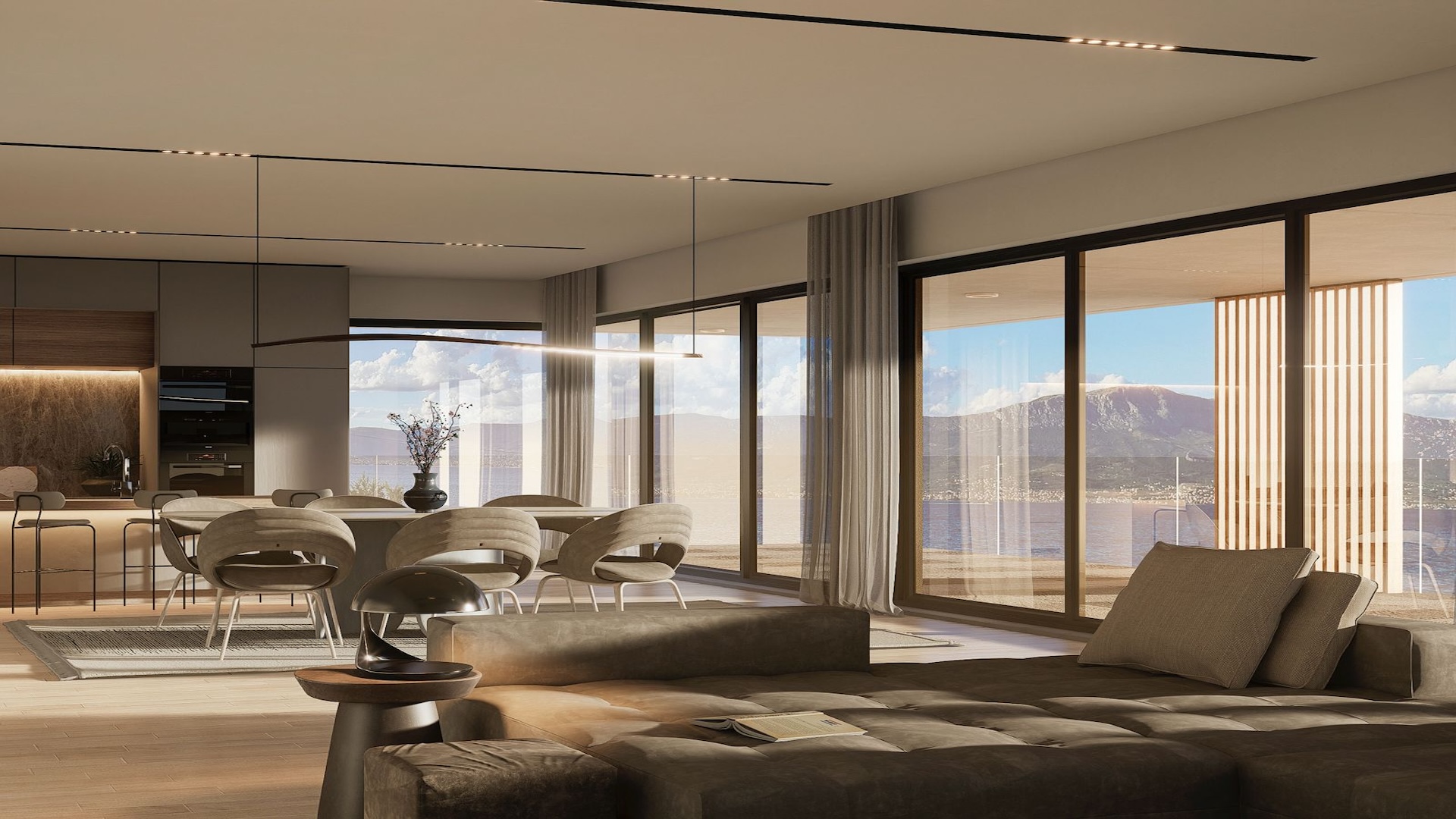In den beiden oberen Etagen gibt es jeweils eine Wohnung pro Gebäude mit Wohn-/Nutzflächen von 228 bzw. 234 Quadratmeter. In die großen Wohnungen gelangt man jeweils mit dem Aufzug direkt von der Tiefgarage.