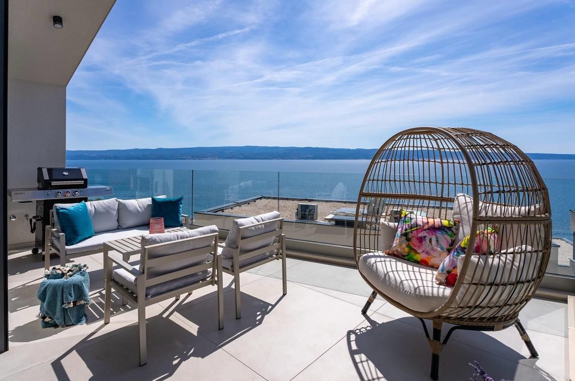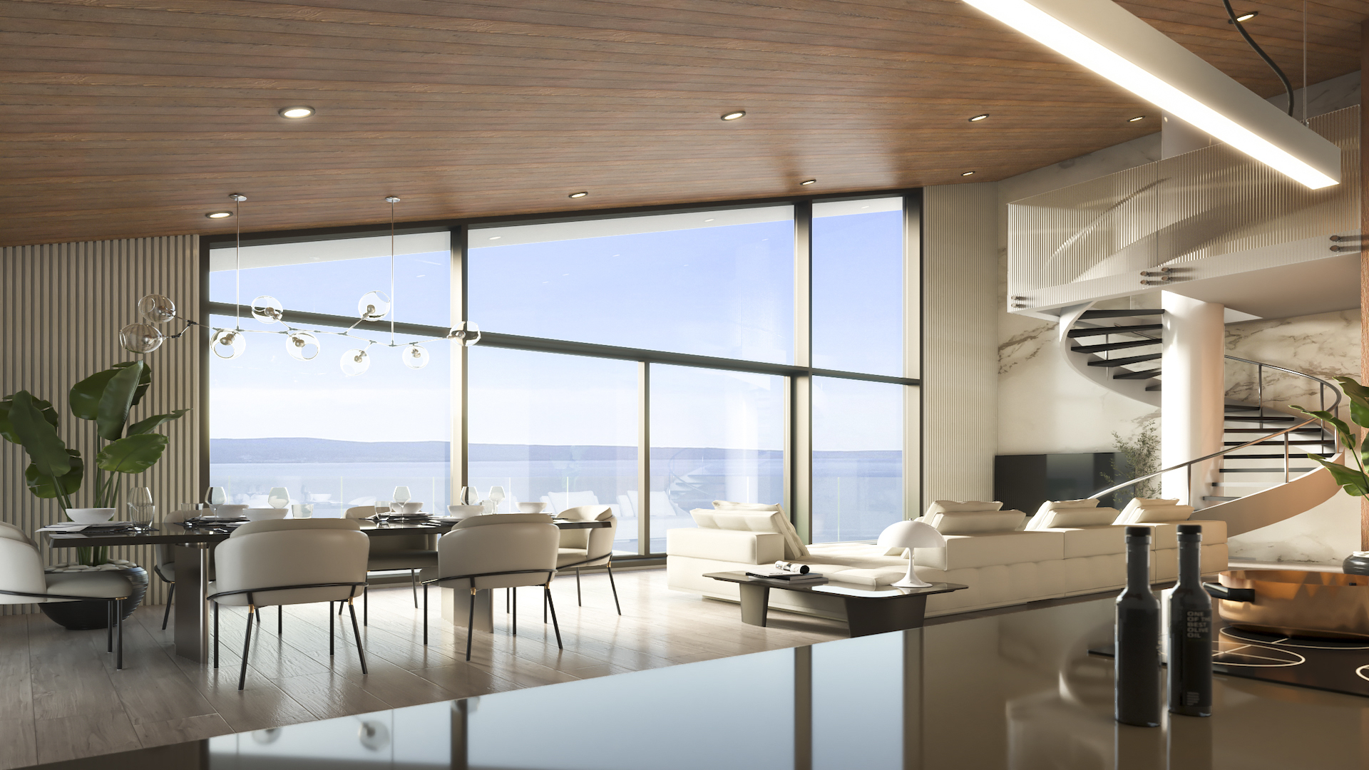 Die Villa Flower ist eine Doppelhaushälfte. Die Architektur des Doppelhauses ist sehr schön. Die Verbindung der beiden Doppelhaushälften besteht lediglich zwischen dem Mittelbau und den darüber liegenden beiden Schlafzimmern. Aufgrund der tollen Architektur, haben wir im Obergeschoss beeindruckende Raumhöhen und das in Kombination mit einem atemberaubenden Meerblick.