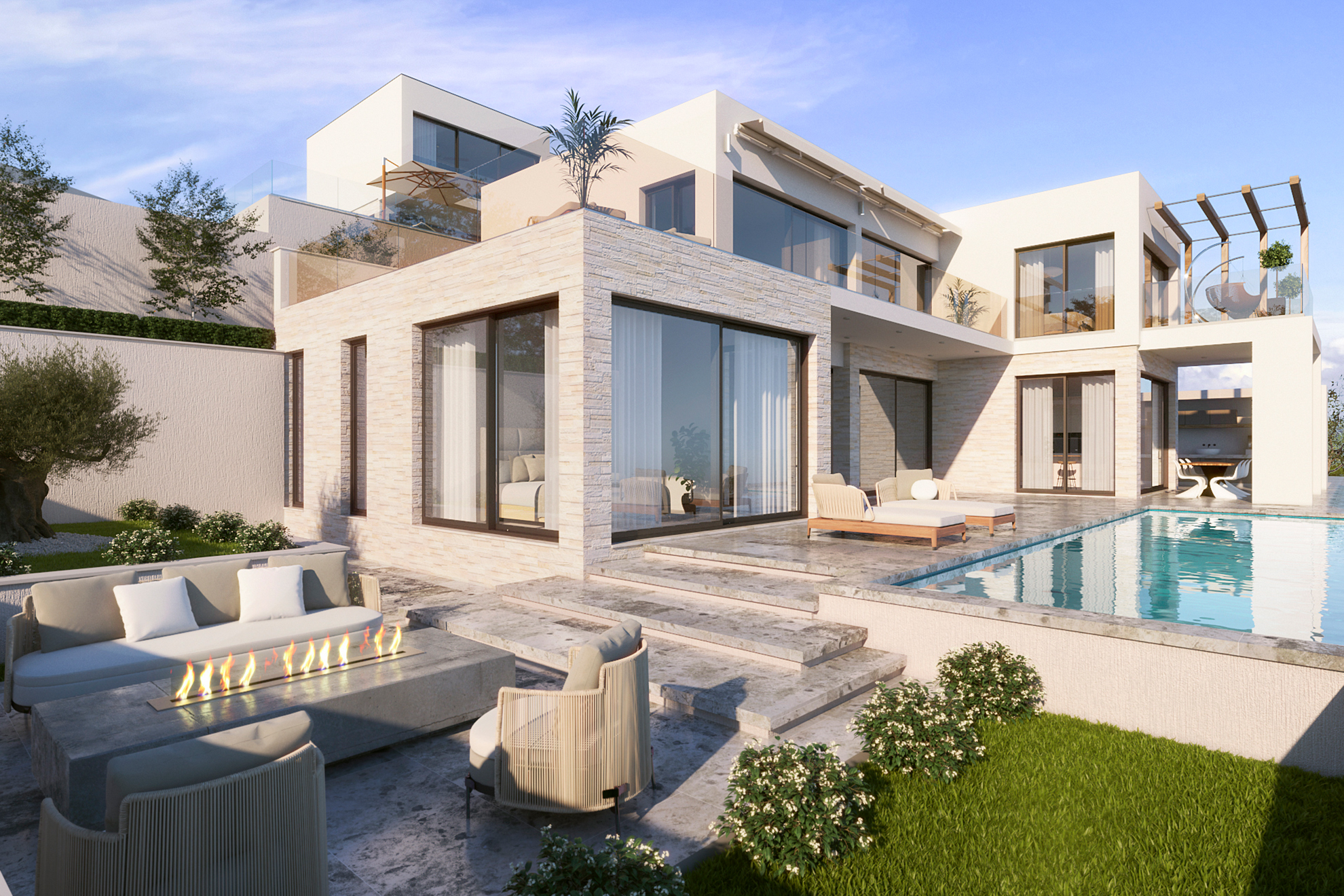 Die Villa befindet sich in der 3. Reihe der Anlage und fügt sich optimal in das Projekt ein.