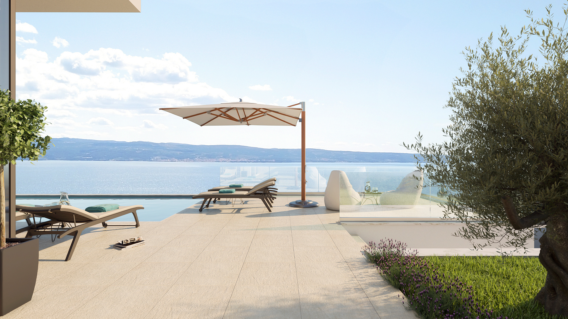 Die Villa Isis hat im Projekt eine Sonderstellung. Das sieht man schon allein an den Daten, 463 m2 Wohn-, Nutzfläche auf einem 1.070 m2 großem Grundstück.