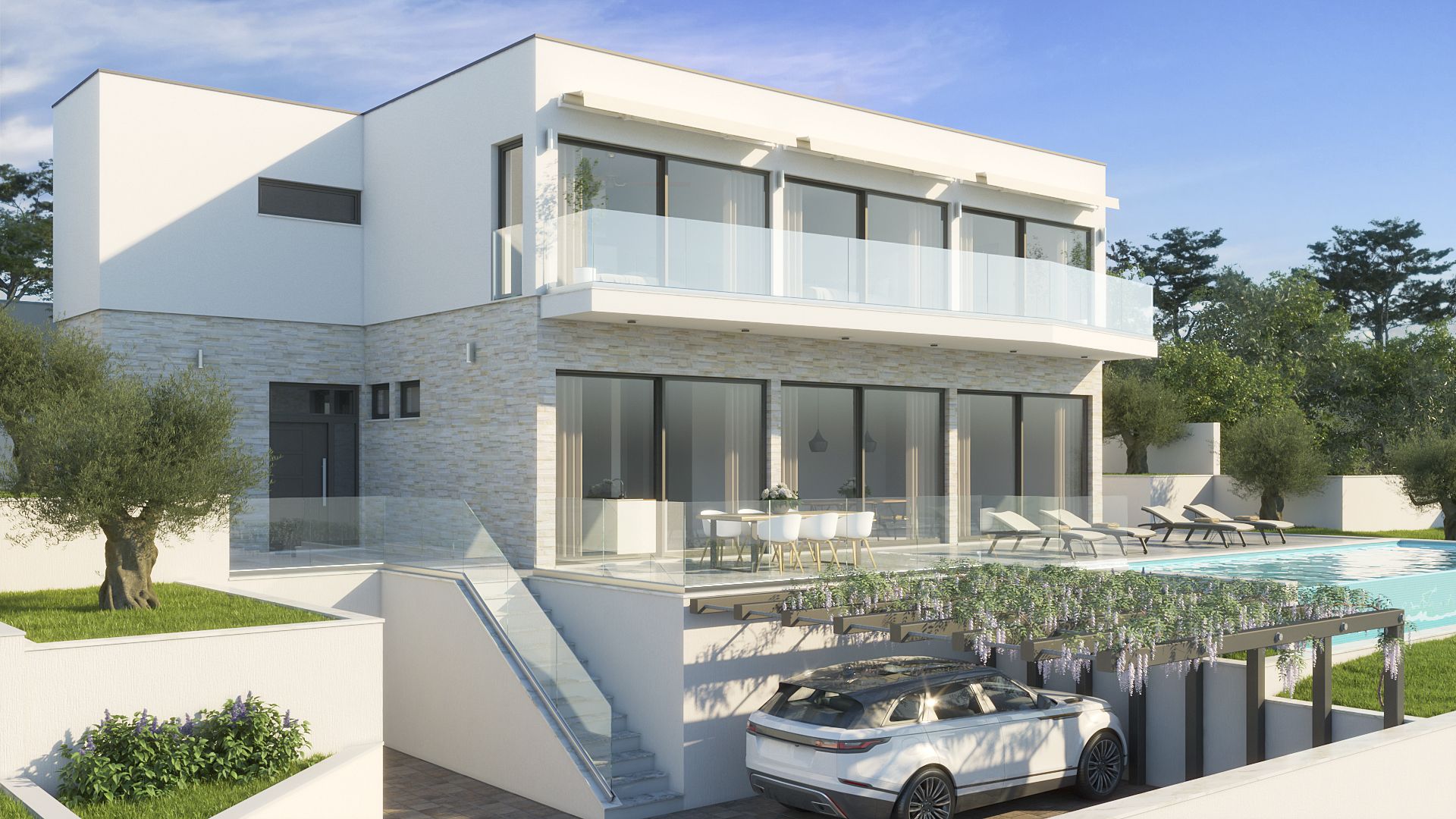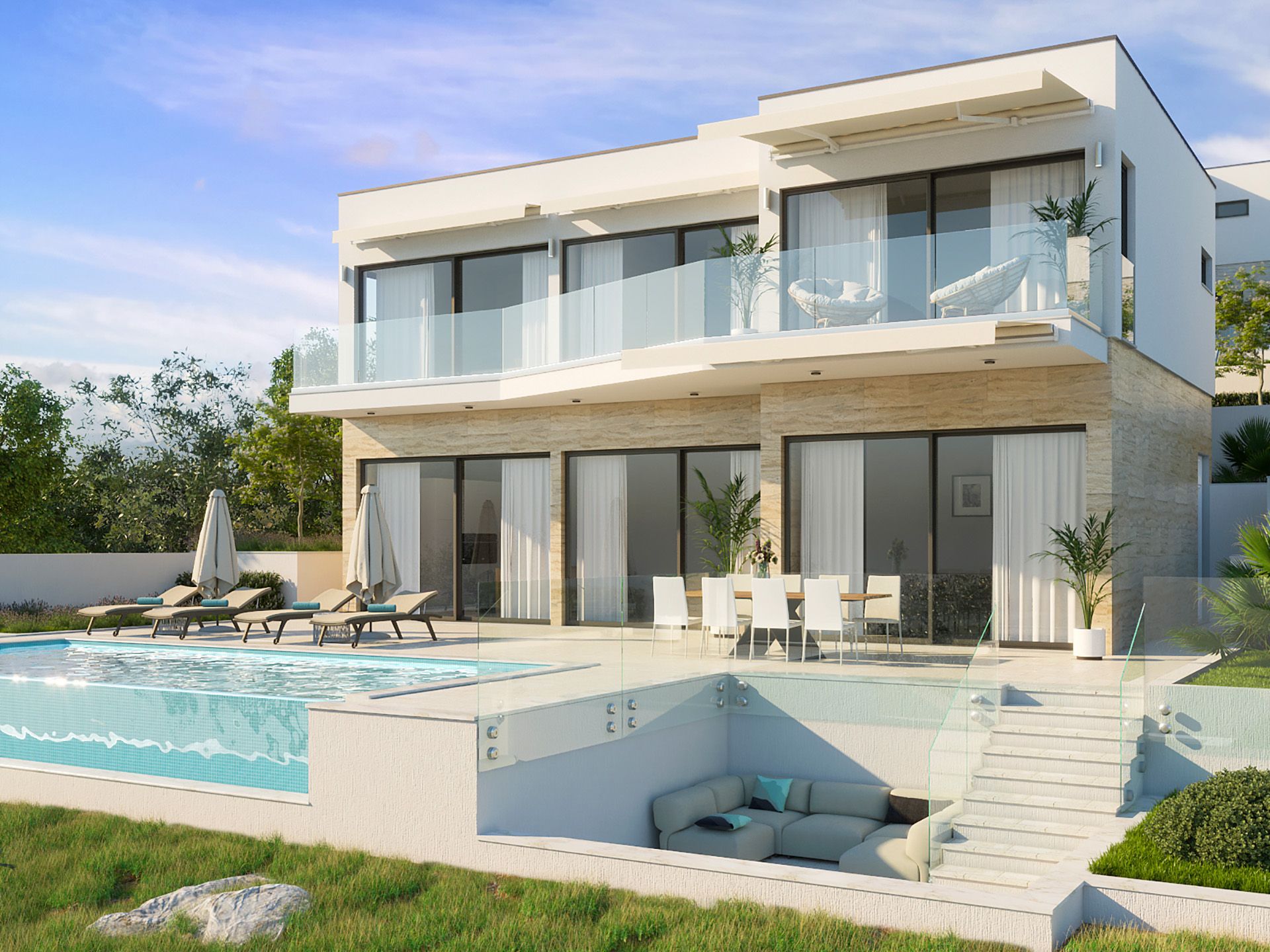 In Kanica, einem beliebten Ort zwischen Marina und Rogoznica, entsteht direkt in der traumhaften Bucht ein Villenensemble bestehend aus 4 tollen Villen.
